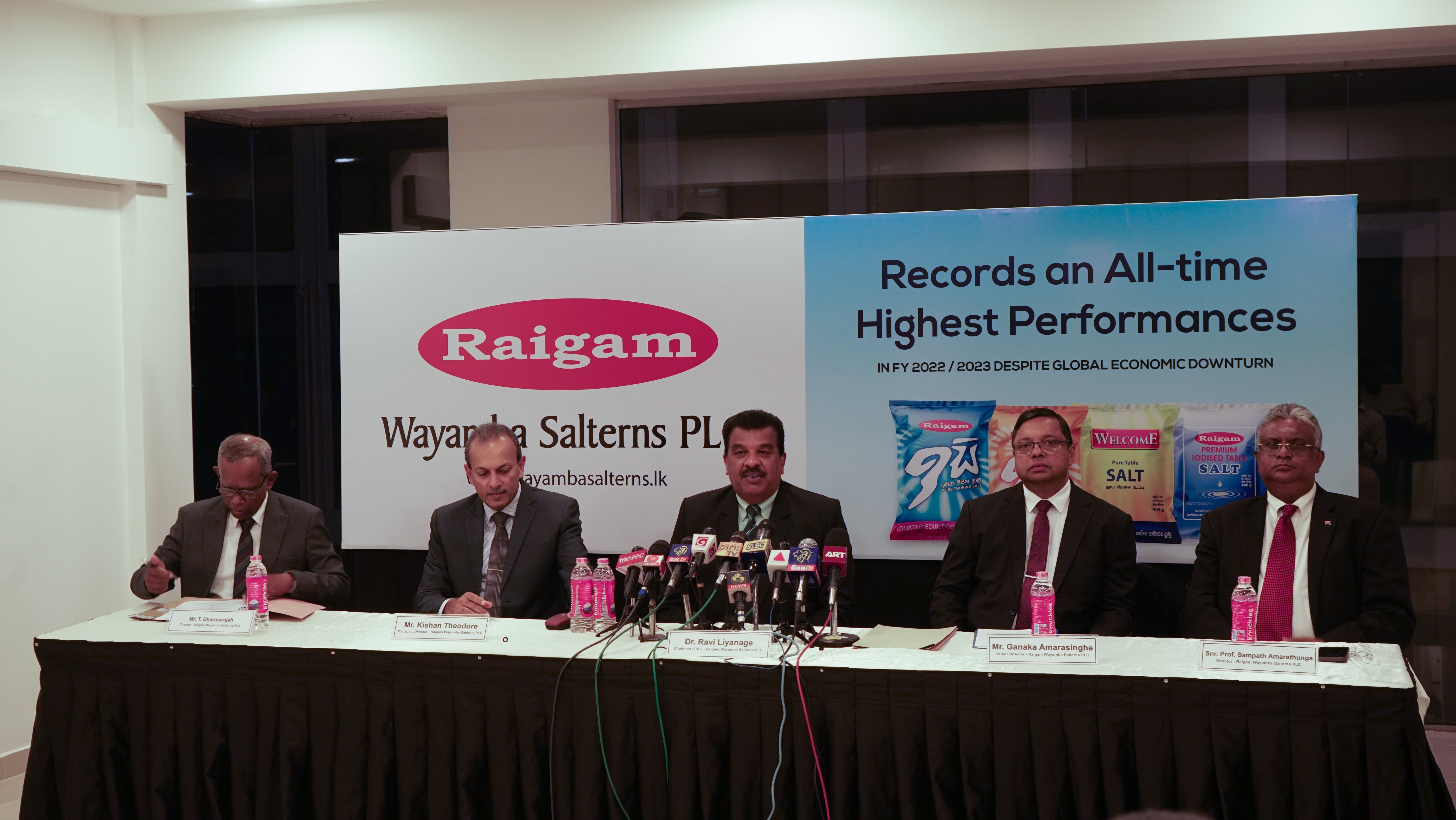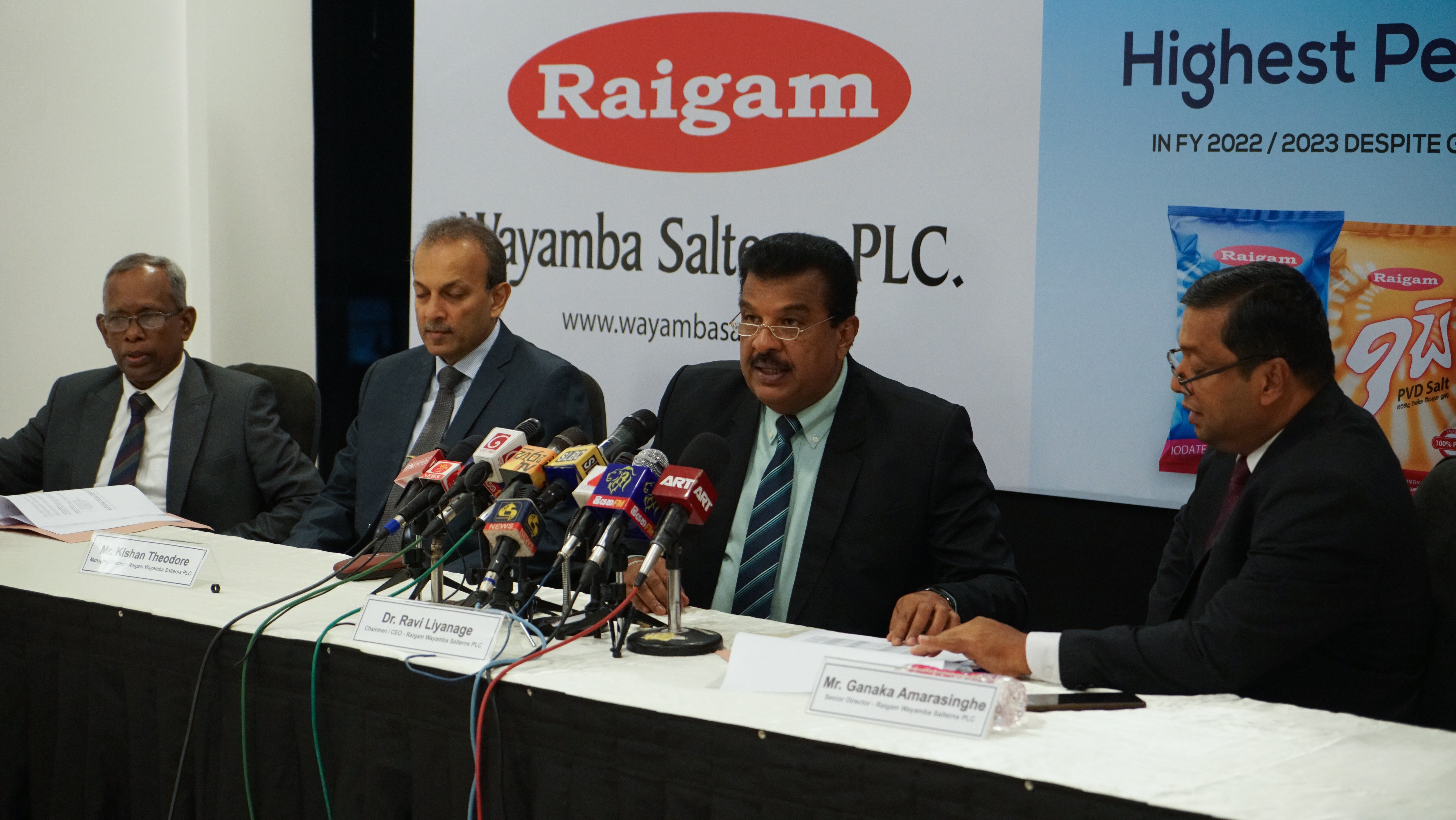 The management of the Raigam Wayamba Salterns PLC (RWS), the one and only salt manufacturing company listed in the Colombo Stock Exchange (CSE) is delighted to declare that the group has recorded its ever highest performance with a remarkable growth compared to the preceding year during the financial year 2022/2023. The press conference to declare the company’s achievement was held at the Raigam Corporate Head Office in Walukarama road, Colombo 03 on 06th of June 2023 with the participation of a large number of media personals. The Company Chairman, Dr.Ravi Liyanage, The Managing Director, Mr.Kishan Theodore, The Senior Director, Mr.Ganaka Amarasinghe along with two Non-executive independent Directors, Senior Professor Sampath Amarathunga and Mr.T. Dharmarajah participated for this event. These impressive results were revealed in the recently published 2022/2023 Provisional Financial Statements (un audited) of the group.